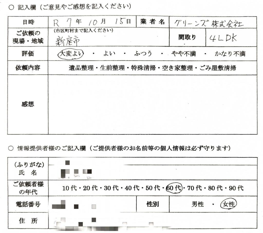 見積りから当日作業まで大変丁寧、且つ迅速な対応でありがとうございました。サービス内容にとても満足しています。