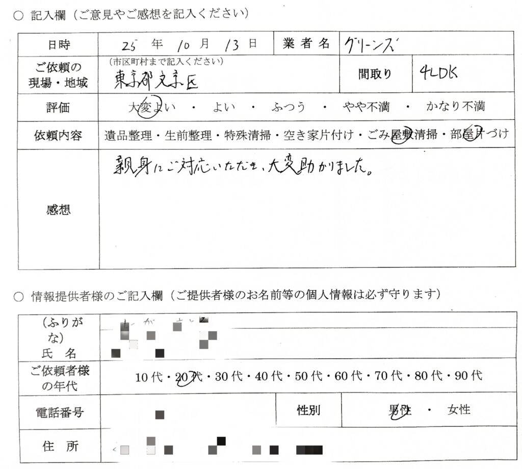 見積り時から、とても丁ねいに対応していただき、気持ちよくお願いできました。 作業もしっかり行っていただき、大変満足しております。 知人等にも紹介できる業者さんだと思います。