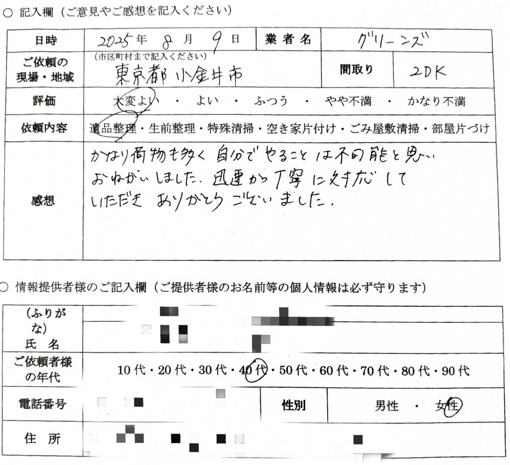 かなり荷物も多く、自分でやることは不可能と思いお願いしました。迅速かつ丁寧に対応していただきありがとうございました。