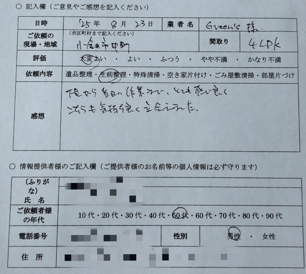 下見から当日の作業まで、とても感じよくこちらも気持ちよく立ち会えました。