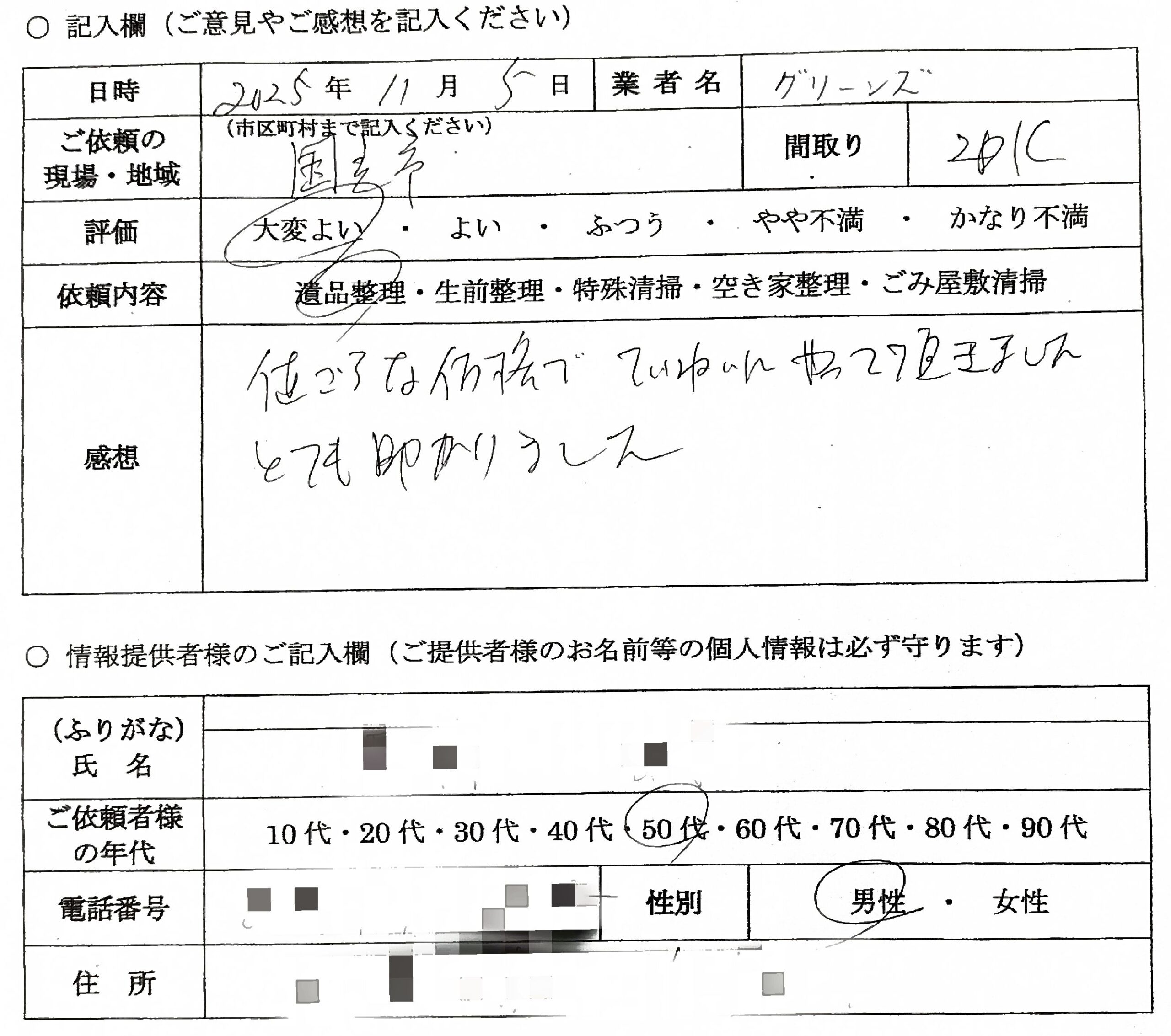 値ごろな価格で丁寧にやっていただきました。とても助かりました。